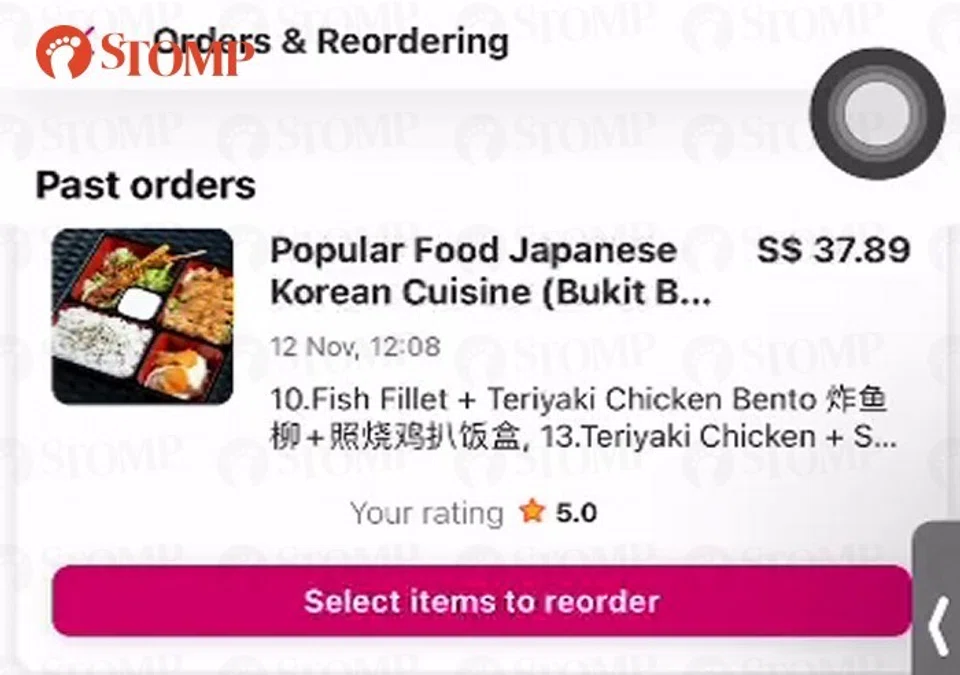 It all started with a $37.89 order from Popular Food Japanese Korean Cuisine (Bukit Batok Central) on Nov 12 at 11.43am.