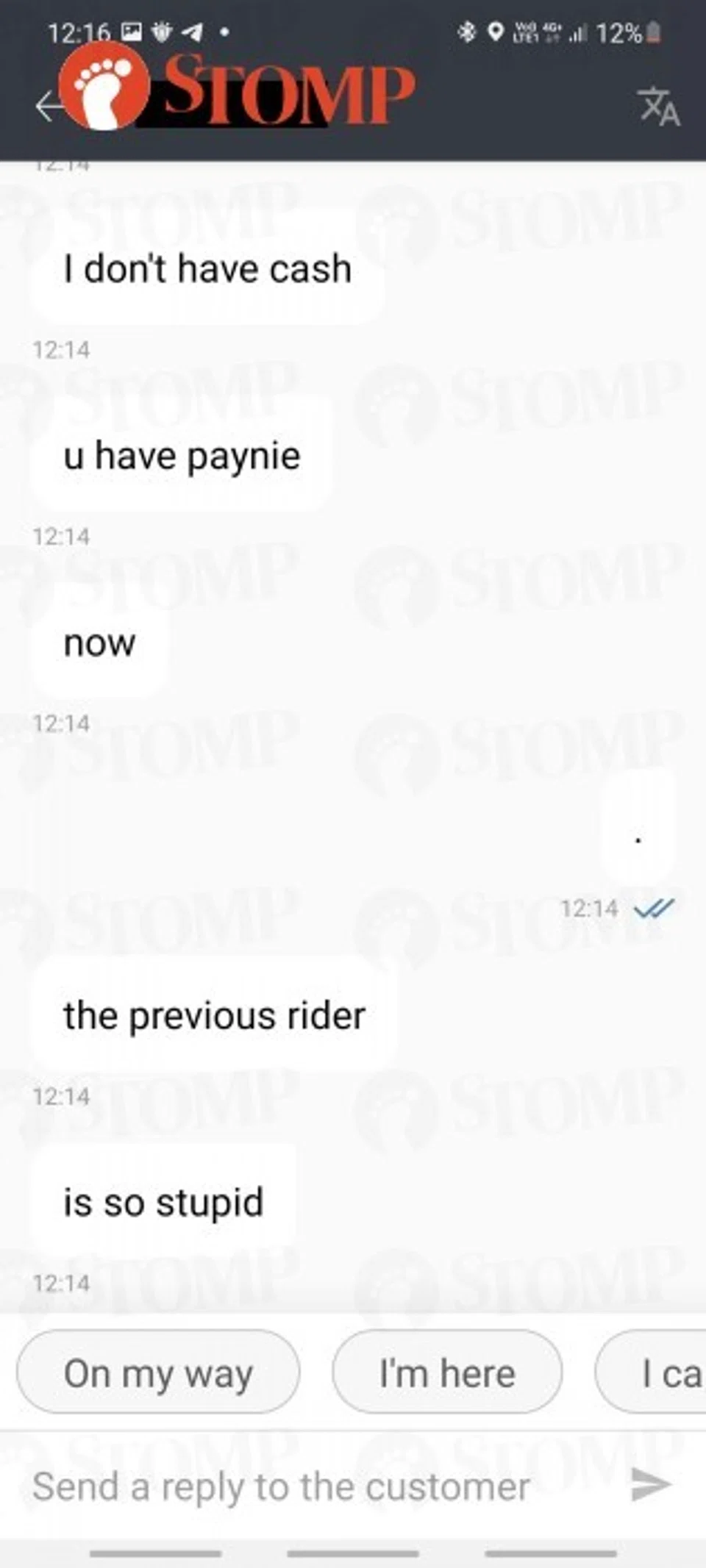 "In addition, the way she asked questions one text by one text delays the rider's precious time as it is mandatory for the rider to reply before exiting the conversation and continuing on our journey.