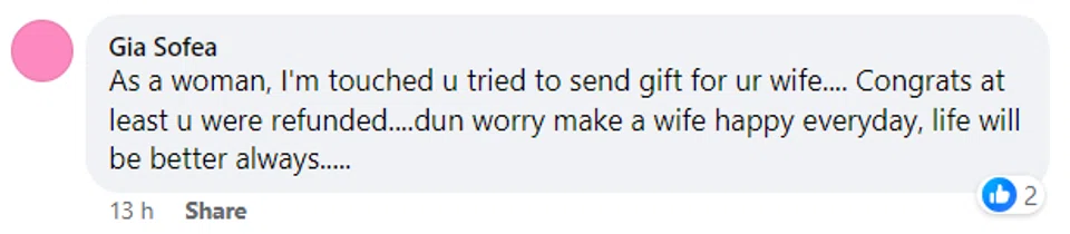 A few users tried to comfort Shaun and applauded his efforts to send his wife flowers.