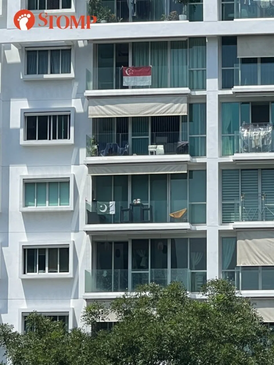 "It's the Pakistani flag at The Ansley condominium," said a Stomper who shared a photo of the green-and-white flag two storeys below a red-and-white Singapore flag displayed at the same building.