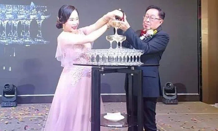 Samantha Ee Kai Chee, 29, got hitched to the president of G.E. Mining, Datuk Tai Huat Chang, at hotel W Kuala Lumpur.