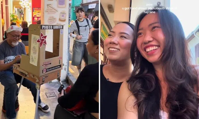 A TikTok video of a man behind a cardboard 'photo booth' drawing cutesy caricatures of passers-by at Haji Lane has gone viral.
