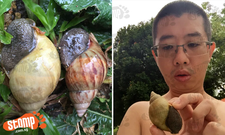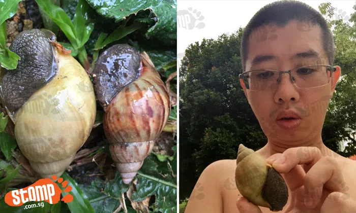 Stomper Lau Lup found a large and unusual-looking snail in Bishan last Friday morning (July 22).