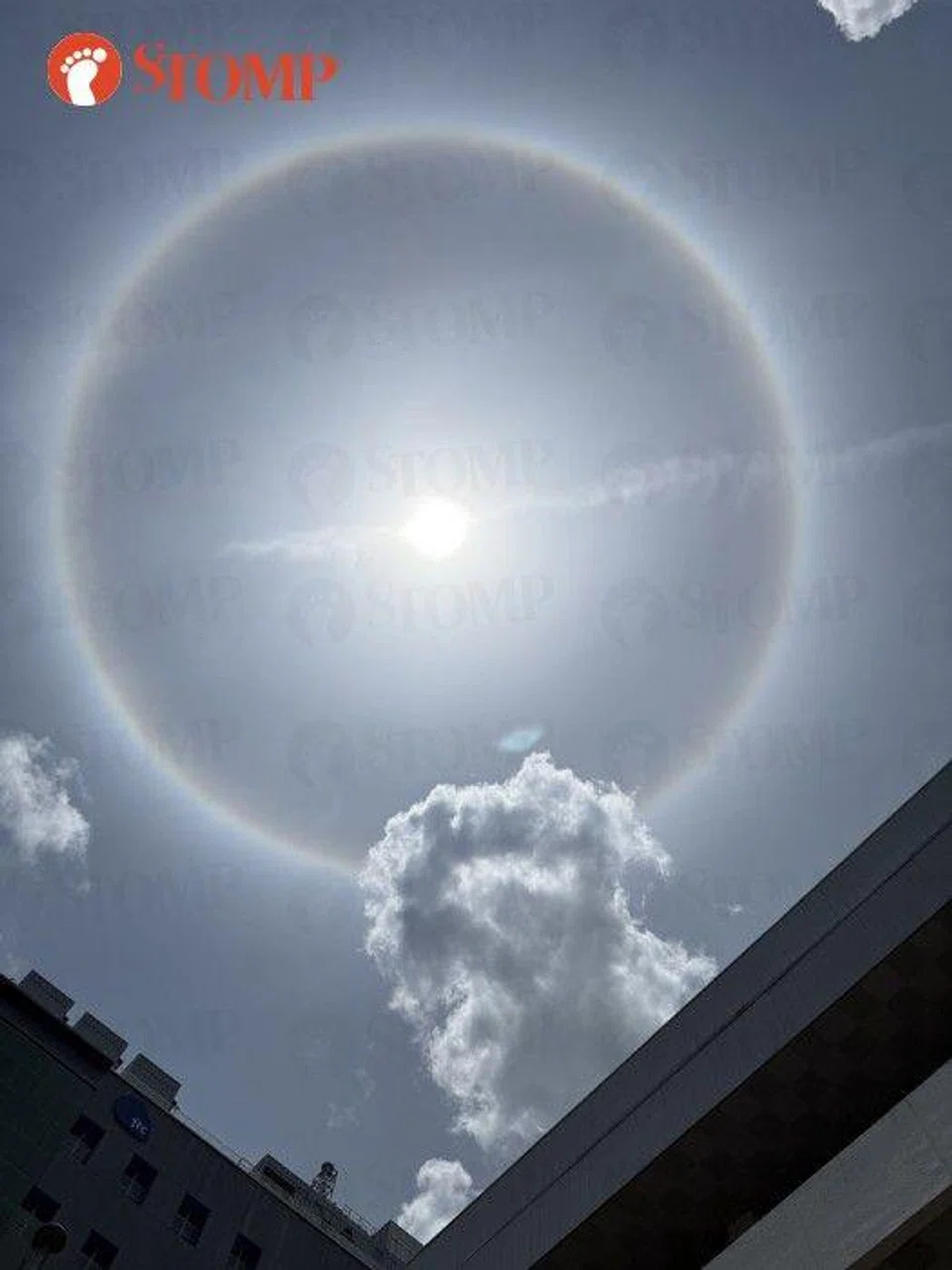 According to the National Environment Agency, this is not a common sight in Singapore as sun halos tend to be covered by low to mid-level clouds.