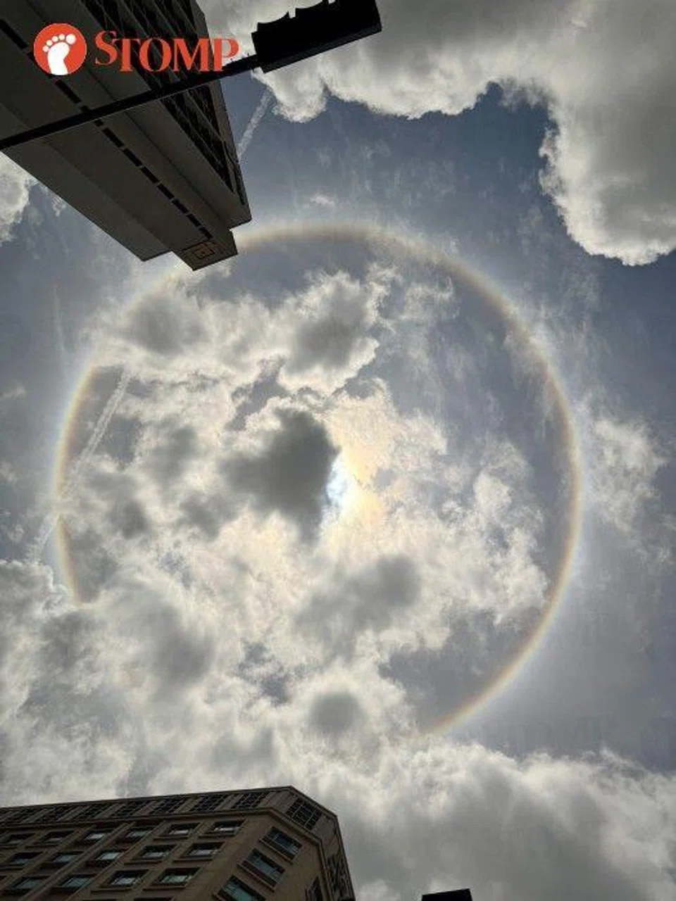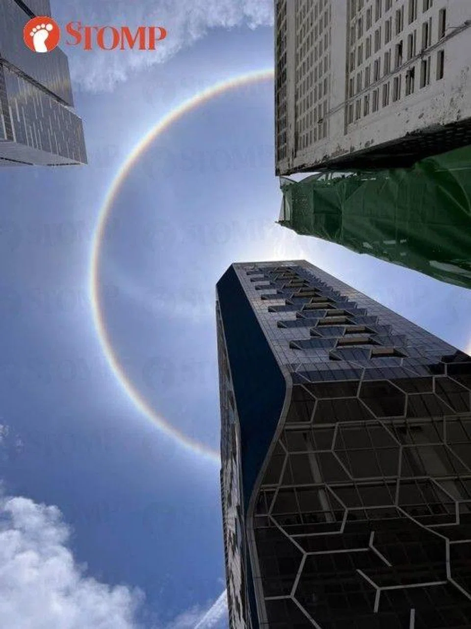 Sharing a photo taken at Shenton Way, Stomper Ashish described it as a "rainbow wrapping the sun, magic in the sky" and referred to it as a "rare sight".