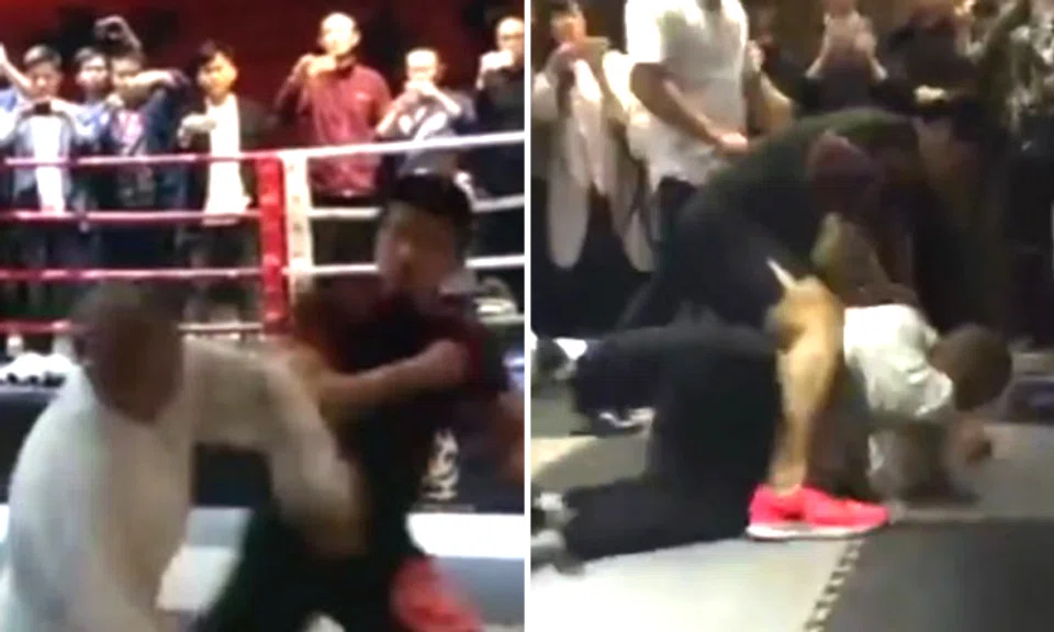 Barely five seconds after Xu lands his first few blows, Wei is sent crashing to the ground.
