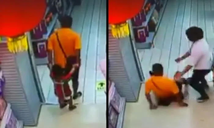 The supermarket's CCTV video shows a saleswoman helping the father up.