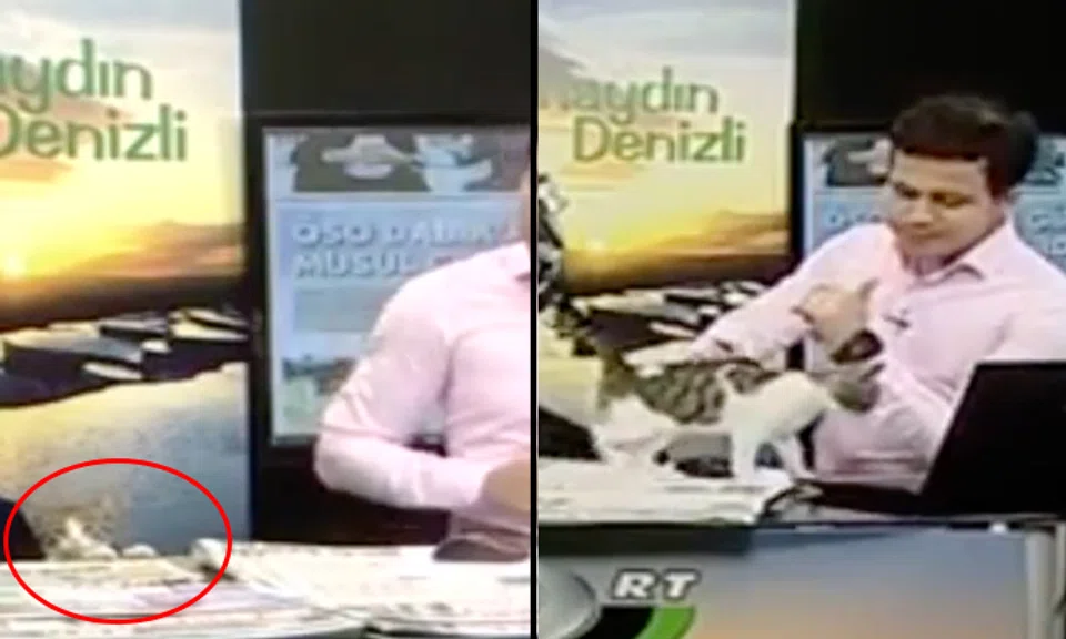 This Turkish newscaster (and his audience) received a lovely morning surprise in the form of a furry feline.