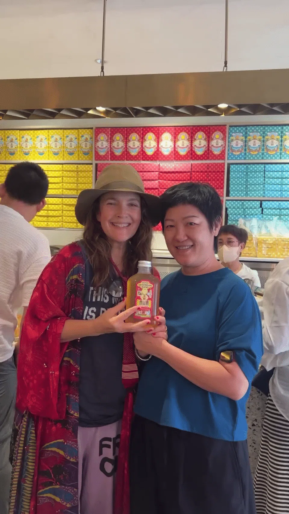 Drew Barrymore with fourth-generation owner Ana Fong of local traditional Cantonese pastry shop Tong Heng during her visit to Singapore. PHOTO: BLUESKY.ESCAPES/INSTAGRAM