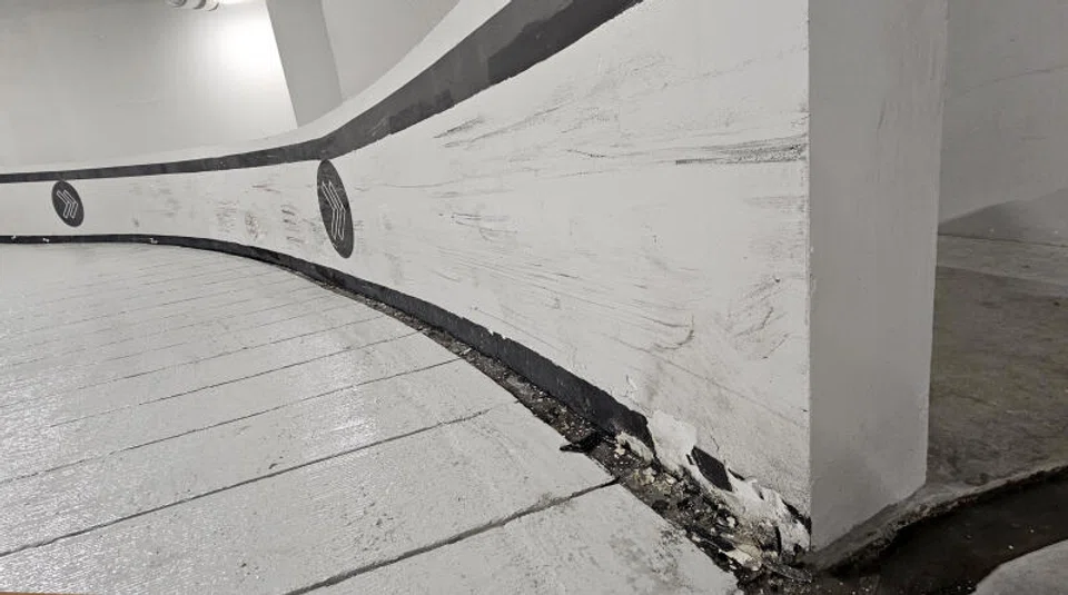 Funan cordons off entrance to basement carpark after 'several' vehicles skidded into wall going down