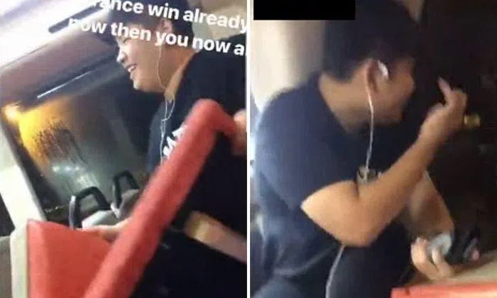 A youth displayed various silly antics -- from removing a bus seat to flashing his middle finger -- while being filmed by his very amused friends.