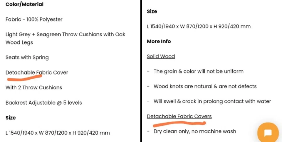 After the article was published, the website has since been updated to change the line "Detachable Fabric Cover" to "Detachable Fabric Cover with some unscrewing of parts".