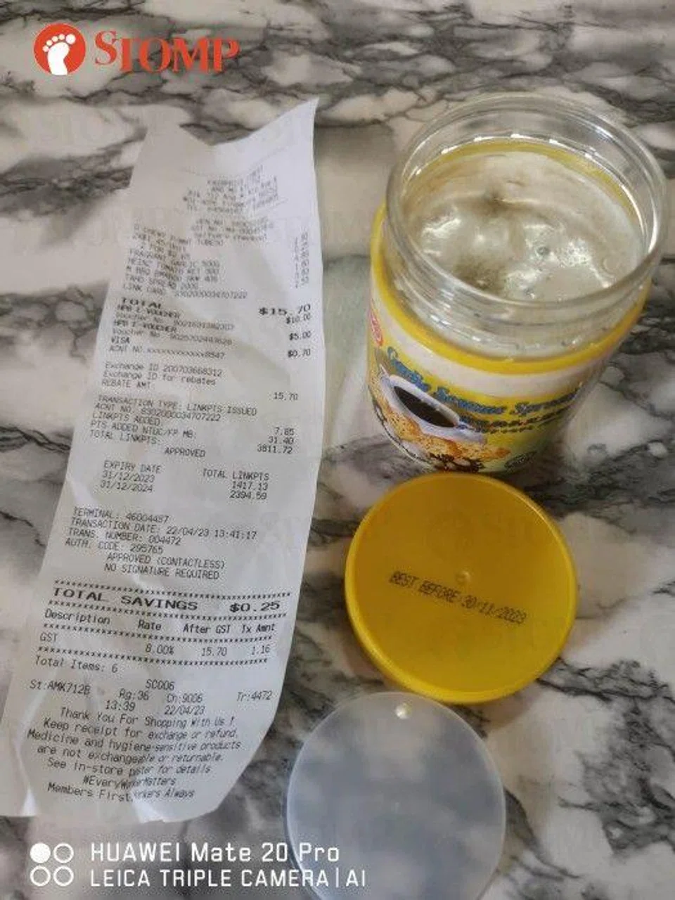 The Stomper shared photos of the receipt and an open jar showing mould growing on top of the garlic sesame spread.