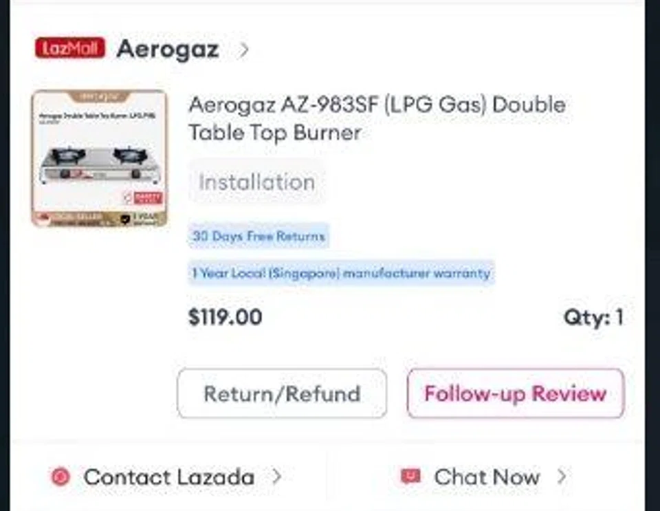 In response to a Stomp query, a spokesperson for Aerogaz said the company was aware of the incident involving the Stomper's Aerogaz table top burner.
