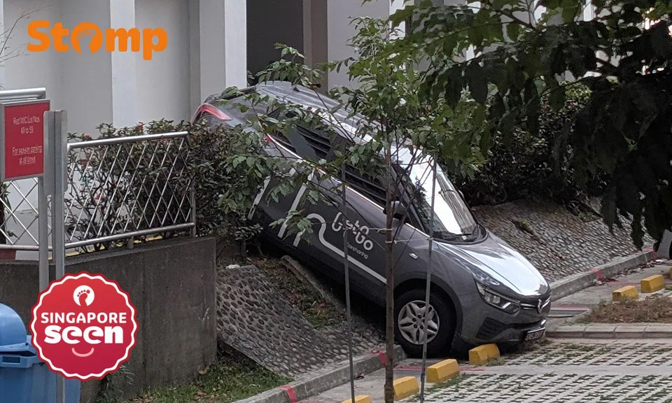 Stomper OMS alerted Stomp to the incident and shared a photo of the grey SsangYong Tivoli that appeared to have mounted the sloped edge behind a parking lot near Block 248 Bishan Street 22.