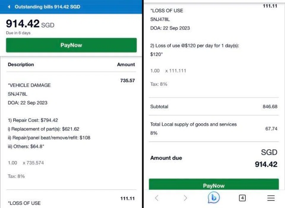 When contacted by Stomp, a GetGo spokesperson said: "We want to clarify that the repair costs related to this incident go beyond just a punctured tyre.