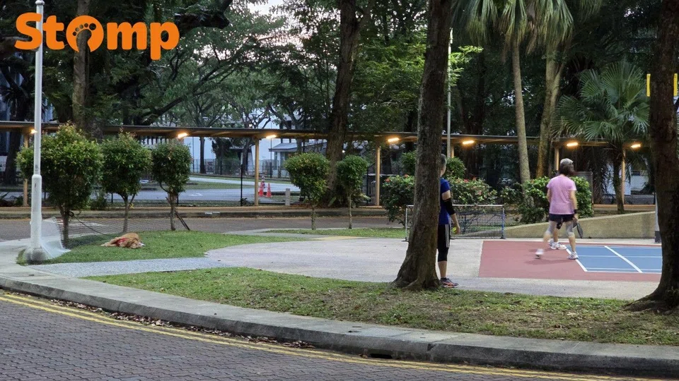 A Geylang resident has raised concerns after spotting a dog tied to a tree near a pickleball court while its owners were playing nearby.