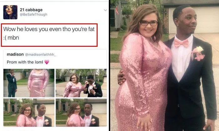 A Twitter user with the username '21cabbage' reposted her photos with the caption 'Wow he (Madison's boyfriend) loves you even tho you're fat'.