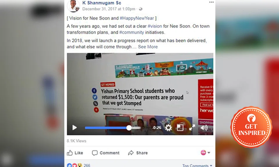 Two primary school girls who were on Stomp's Get Inspired section for returning a wallet containing $1,500 were featured in Home Affairs and Law Minister K Shanmugam's new year video.