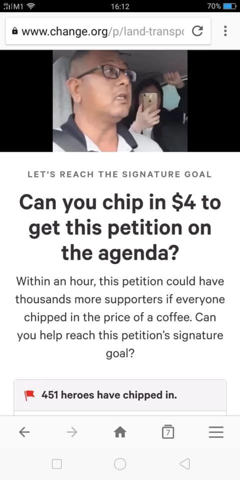 Titled 'Save Abang Driver', the petition stated: "Abang has three children and is the sole breadwinner of his family. The loss of income during the period of possible suspension will hit his finances hard."