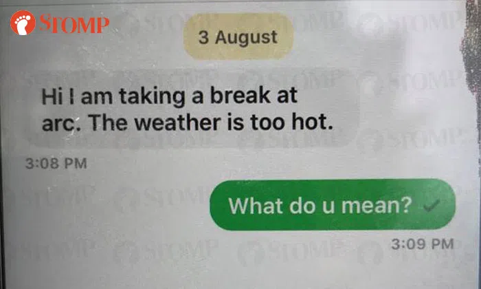At 3.08pm, the driver messaged them and said he was taking a break at Alexandra Retail Centre (ARC) because it was "too hot".