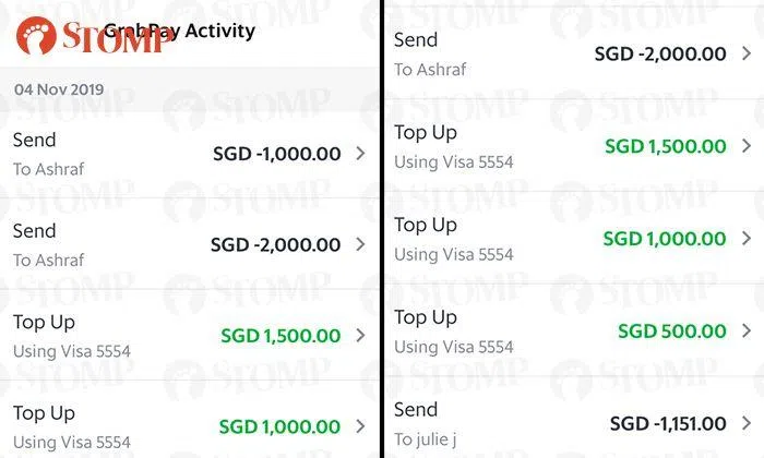 Stomper Loh shared screenshots of the transactions and told Stomp: "I went out for supper with my friends at about 12.30am on Nov 4.