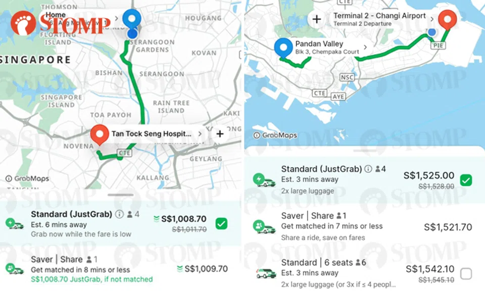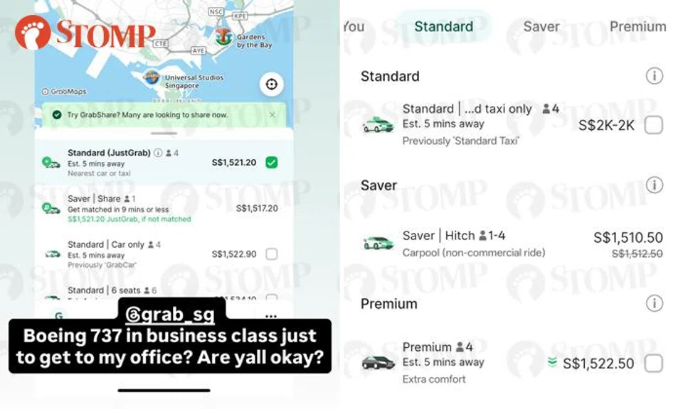 Stomper Miah was quoted $1,521 for a JustGrab ride from Yew Tee to Bendemeer. She likened the price to flying on a "Boeing 373 in business class".