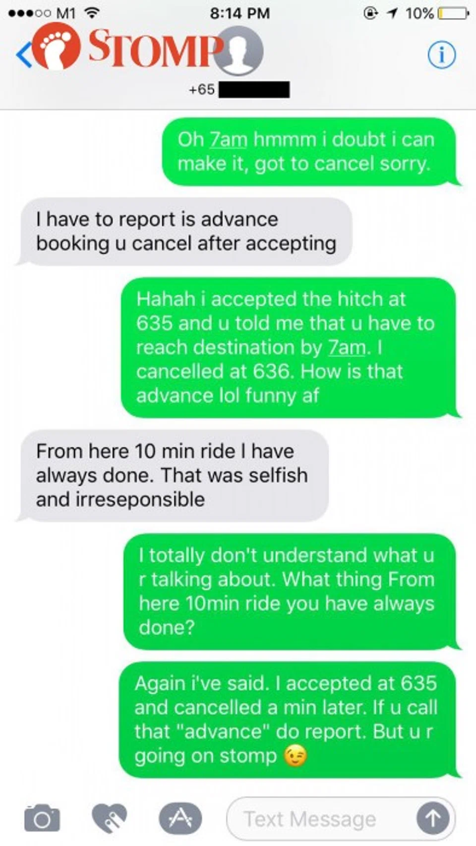 Patricia told Stomp: "I felt uncomfortable checking with the other passenger if she was a student or not, so I sent the next text message."
