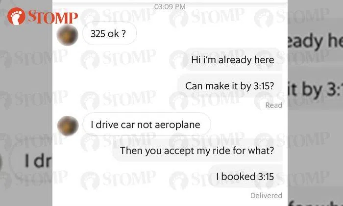 GrabHitch driver says 'I drive car not aeroplane' after being asked to arrive on time
