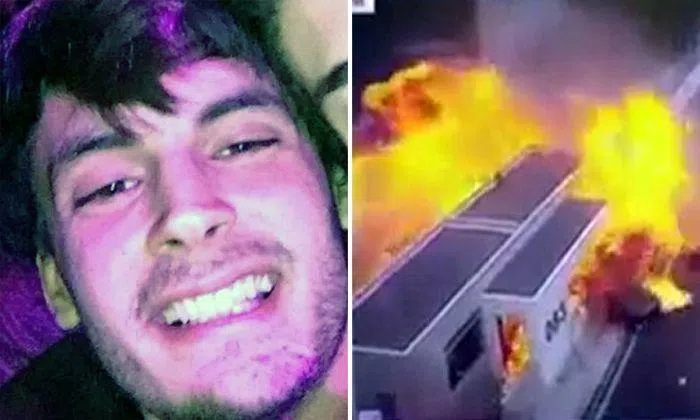 The 24-year-old lost control of the car and crashed into a parked Honda Civic so hard that both slam into a service centre building and exploded.