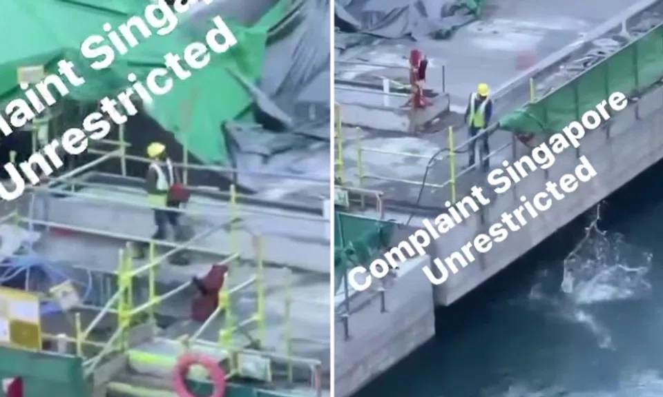 In a video posted to the Complaint Singapore Unrestricted Facebook page on Dec 8, a worker at The Reef at King's Dock worksite is seen discarding construction debris and rubbish into the waters.