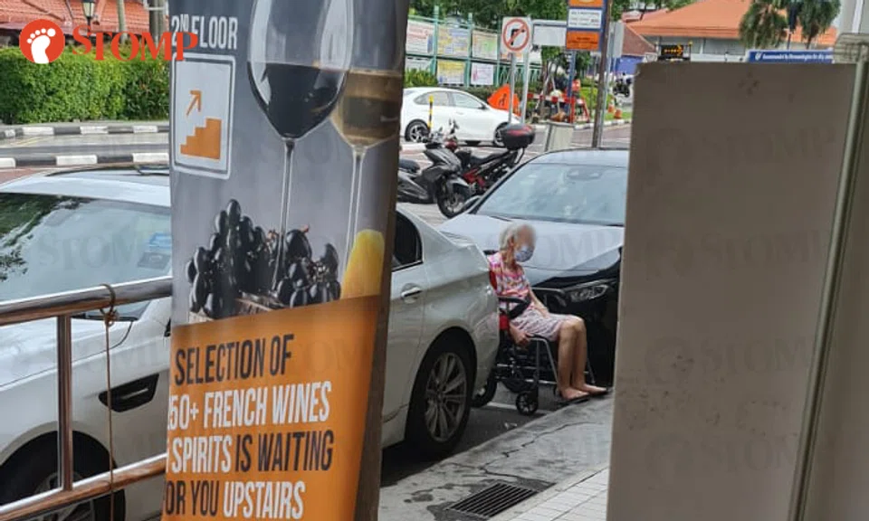 A helper apparently 'parked' a wheelchair-bound woman in between two stationary cars by the roadside in Serangoon Gardens and then went to buy lottery.