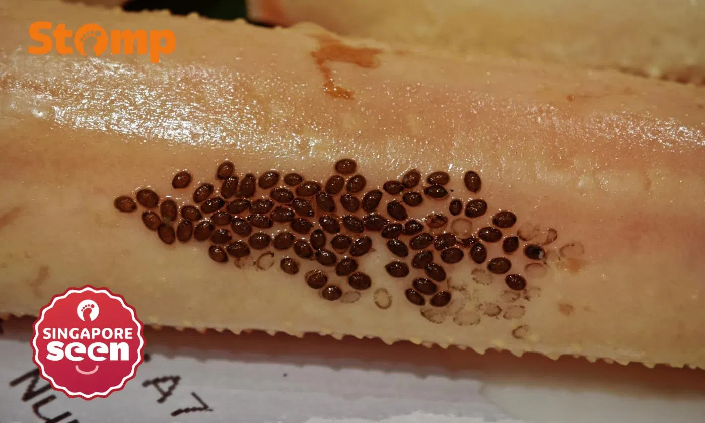 Here are your snow crab legs -- with a side of leech eggs at Hougang restaurant