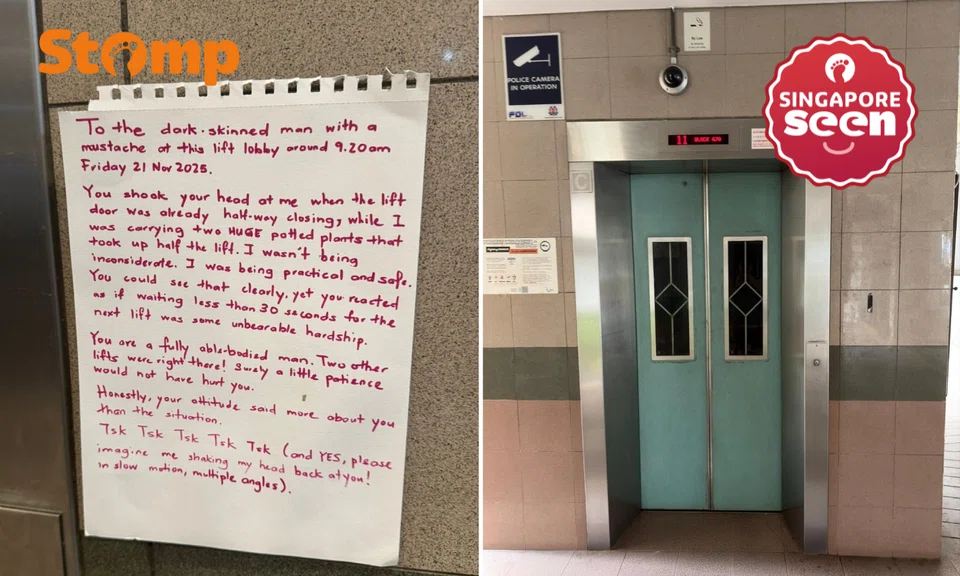 Stomper Rafa'el said he spotted the amusing note in the lift lobby of Block 678 Choa Chu Kang Crescent on Nov 21.