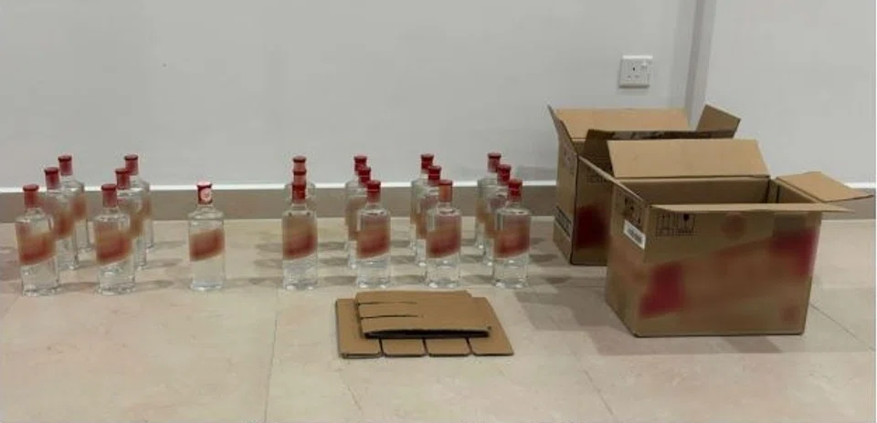 In one operation, a Singaporean man, 45, was arrested for storing duty-unpaid liquor at his Loyang residence. A total of 19 bottles of samsoo or "baijiu" were seized. The liquor was allegedly intended for sale.