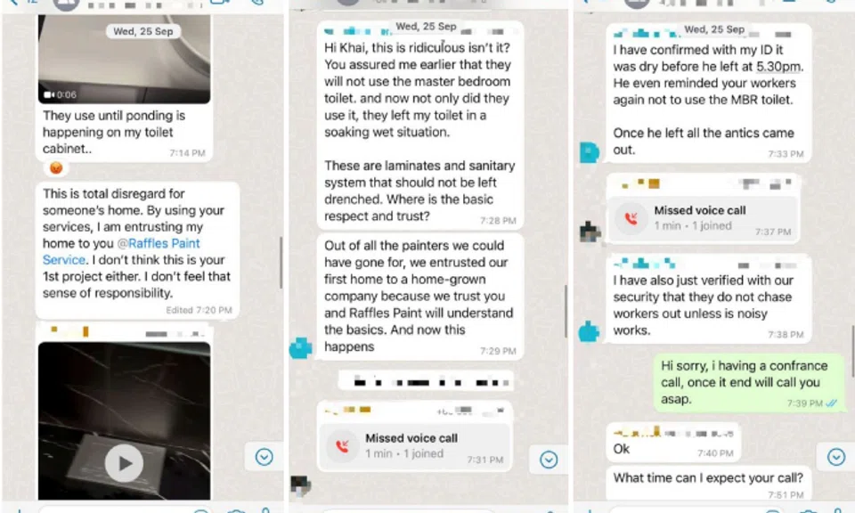 Khai told Stomp: "During the end of day two of the painting job, Mr Derrick complained that the toilet was wet. My painter was helping to clean off the dust, but water was splashed on the cabinet which did not cause any damage."