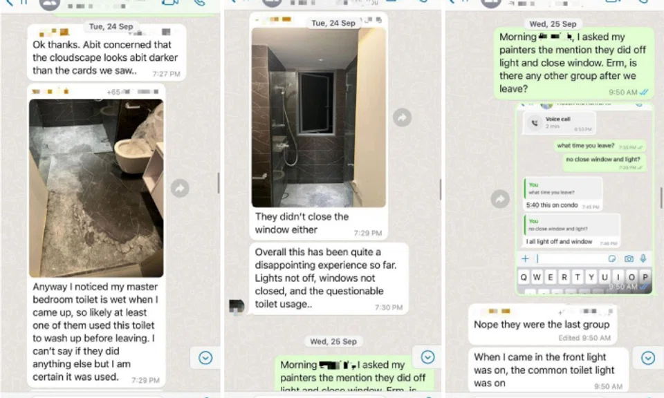 The homeowner told Stomp: "On the final day of the job, the painters lied to us, claiming that security had chased them off the premises at 5.30pm.