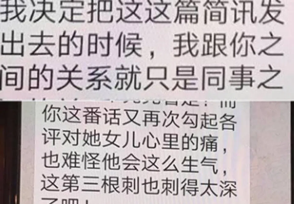 The message, which was written in Mandarin and about 1,100 words in length alleged that Pan and her husband, Huang Shinan had relationship problems over 10 years ago. During that time, the couple somehow dragged Hong and her husband, Zheng Geping into their problems.