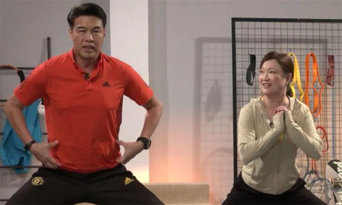 Though Hong said she didn't like vigorous exercises, she joined Zheng in doing some stretches on the show.