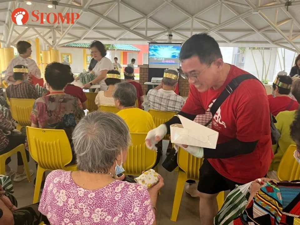Hong Lim stall donates more than 100 curry puffs for senior citizens' birthday party in Toa Payoh