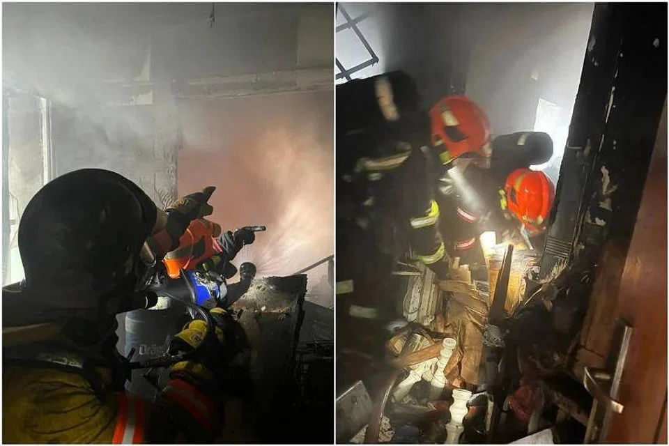 Firefighters from the Alexandra Fire Station forced their way into the flat and extinguished the raging flames inside using two water jets, said SCDF.
