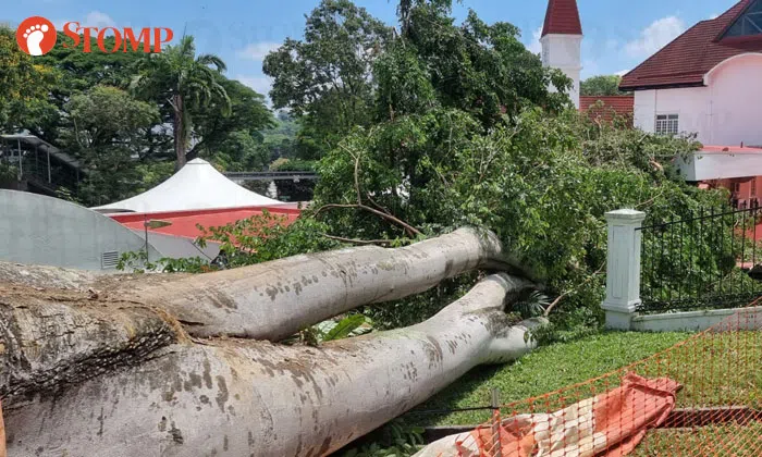 Huge 24-metre tall tree at Malcolm Park falls onto part of Tanglin CC after heavy rain