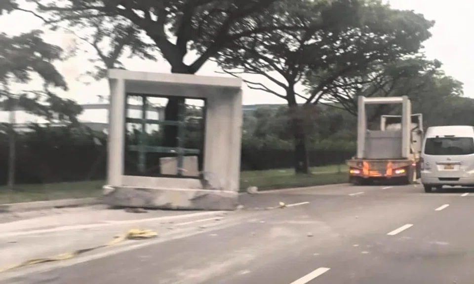 Huge concrete block falls off trailer in Tuas South, driver assisting with police investigations