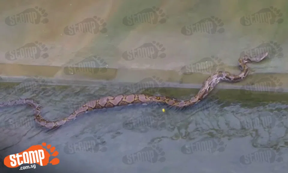 Huge python goes for a dip in the drain at Bukit Batok Ave 4