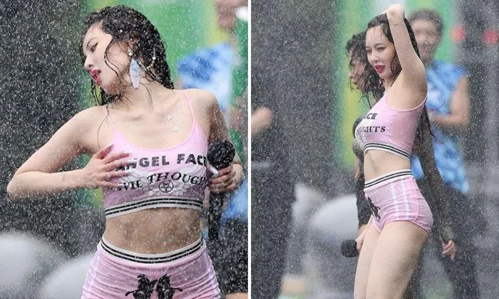 The 27-year-old celebrity attended the 2019 Water Bomb Festival at Jamsil Sports Complex in a pink bra top and shorts on July 21, reported allkpop.