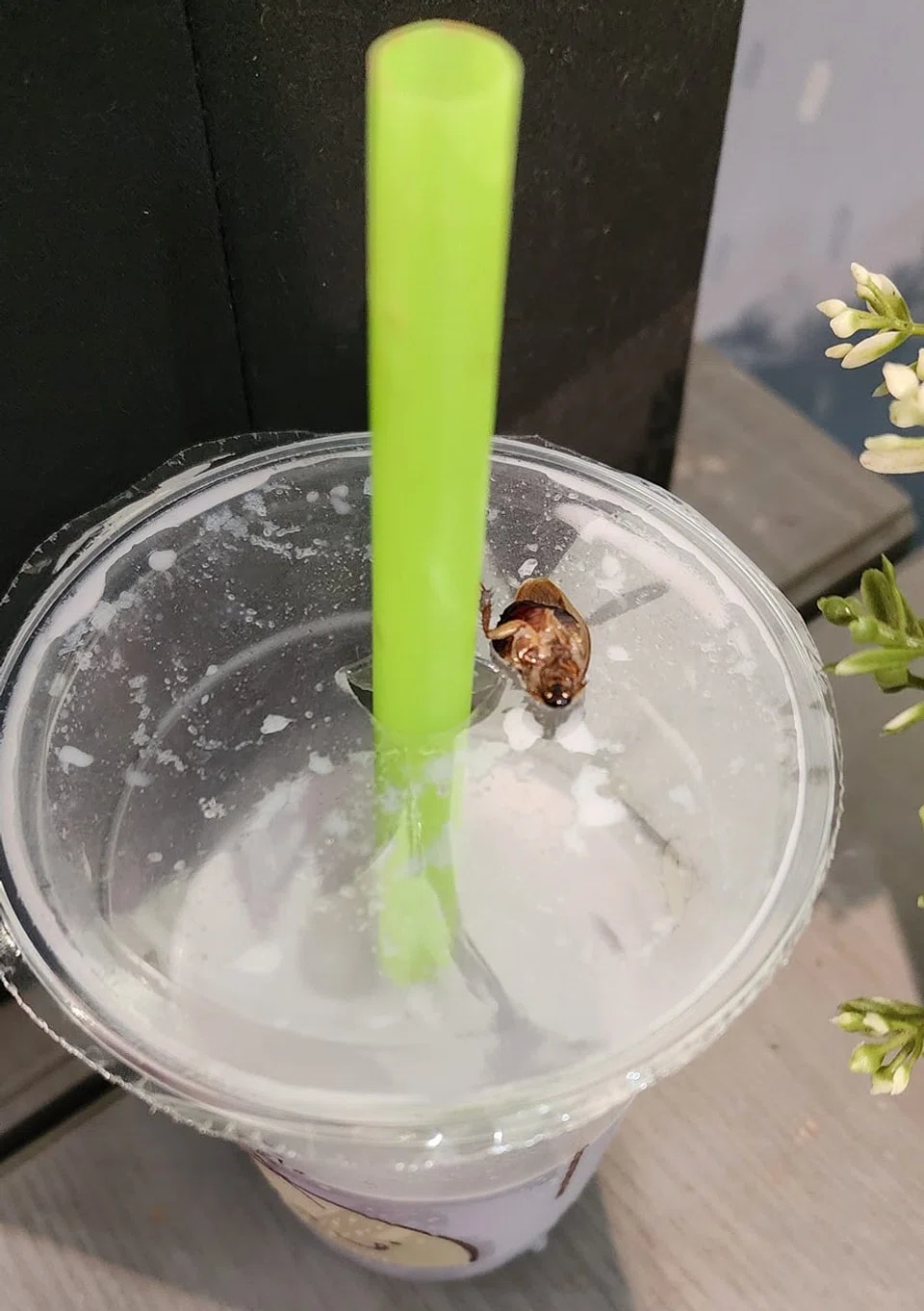 Photos in the post show an insect on the plastic wrap on the cup, with the drink seemingly almost half consumed.