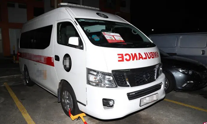 There was also a notice on the windshield of the ambulance, stating that the vehicle had violated parking regulations and a fee of S$214 was required in order to undo the clamp.