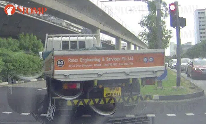 Impatient lorry driver of YP4569U overtakes Stomper while making right turn at Jurong East