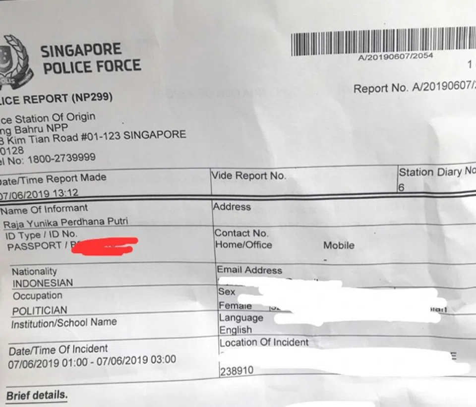 According to a photo of a police report that was posted on haluankepri.com, the incident took place when the two met at Clarke Quay on June 7, shortly after Hari Raya.