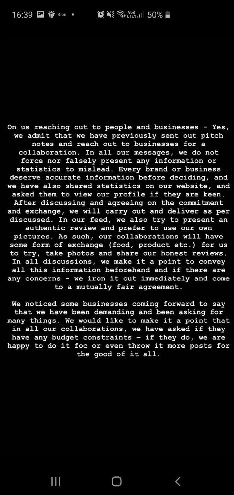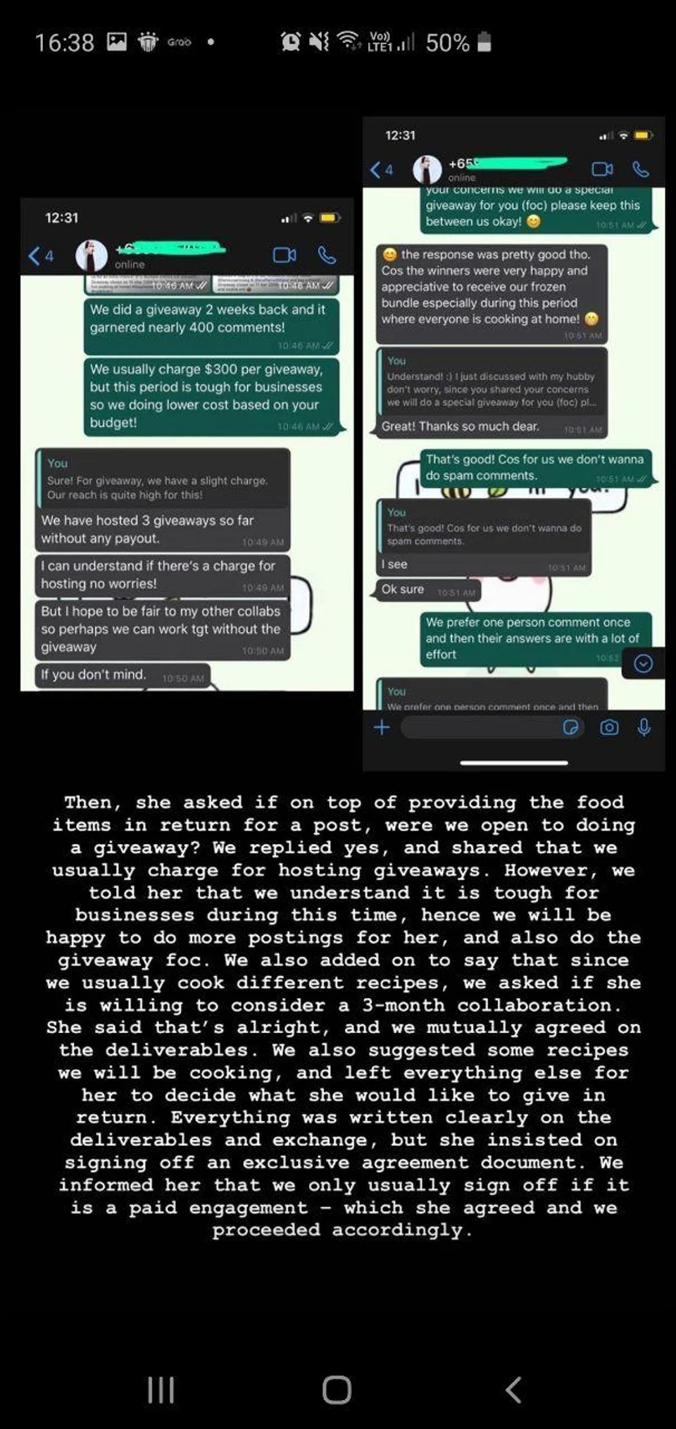 In her post, she said that Instagram influencer An Affair With Food (AAWF) had approached her for a collaboration.